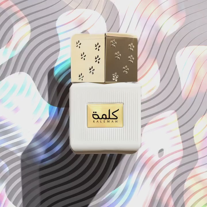 KALEMAH 75ML is an EDP with a rich, fruity blend of orange, pineapple, apple, and berry on the top, followed by a floral mix of pink pepper, roses, white flower, and magnolia in the middle. The base is a musky-woody blend of white musk, dehn al oud hindi-trat, vanilla, and amber.